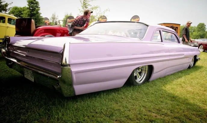 According to the ad, this 1962 Pontiac Catalina is a “Canadian” model and a 2-door post in Mint condition. The paint is described as “Low-Rider Lavender Metallic” while the interior is a white vinyl. It is important to note that the paint color is a custom mix by the owner. We don’t know if the owner mixed a few cans of paint that he had left over to come up with this custom blend, or if he intentionally mixed paint looking for this lively lavender color – in either case, it is striking.