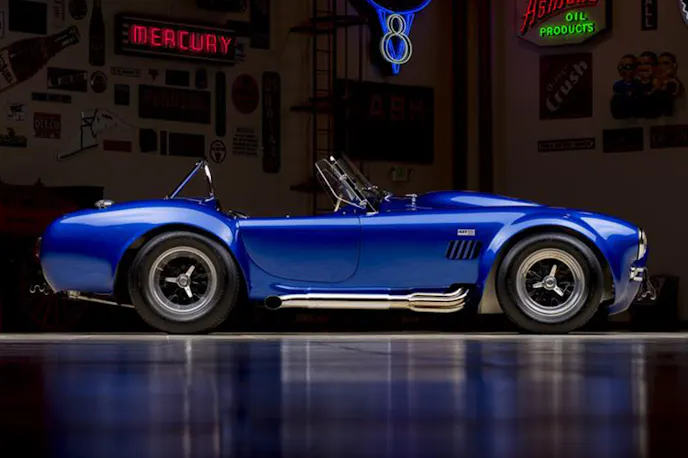 178567_Side_Profile_WebThis Shelby Super Snake started life as one of only 23 CSX roadsters ever built, in 1965 it was shipped and invoiced to Ford Advanced Vehicles, England, as a 427 Cobra Competition roadster. It returned from Europe the following year and was transformed into one of only two Super Snake Cobras ever built by fitting it with twin superchargers which boosted the 427’s output to over 800 horsepower. As it did not have mufflers, a windshield, bumpers and other safety equipment required to be considered street legal, it was reclassified as a 427 Cobra Semi-Competition (SC), though some of these items were added later to make the car eligible for street use.