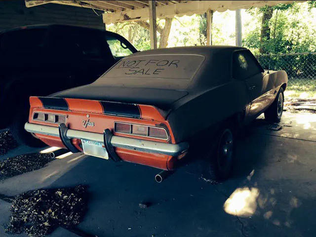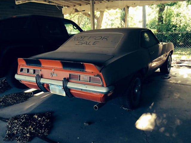 Recently found by our friends over at Cars in Barns, is a highly neglected first generation 1969 Camaro that is slowly weathering away. Currently residing under a carport for at least two years, it appears to be in fair condition from what we can gather from the photos. An all matching numbers car with only 80,000 original miles, the current owner is saving this classic ’69 beast for his son when he turns sixteen.