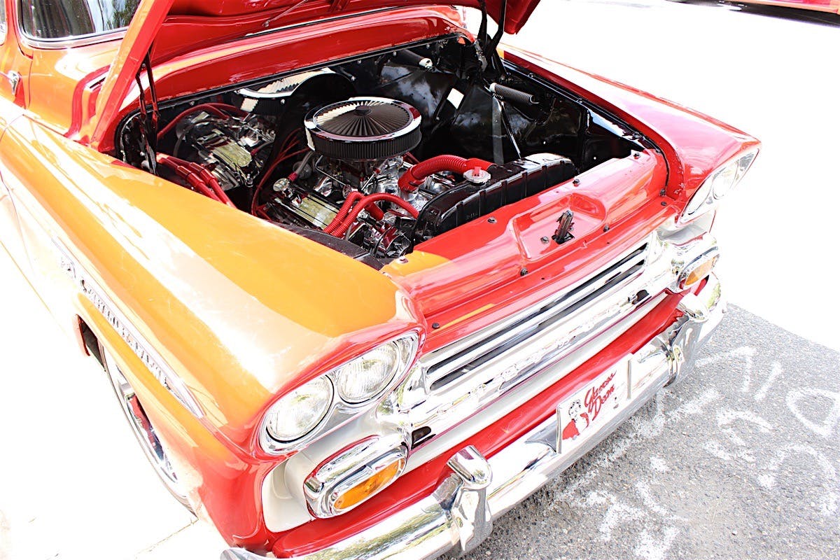 The first thing we asked about was, of course, the paint. Jerry told us that he’s had the car for six years, but only had the paint done last year. To give it the incredibly deep hue, he actually had some purple mixed in; at certain angles, it’s revealed in a beautiful gradient of the two colors. And with the original 327 small-block, Powerglide transmission, and air bag suspension, this BowTie likely cruises as good as it looks.
