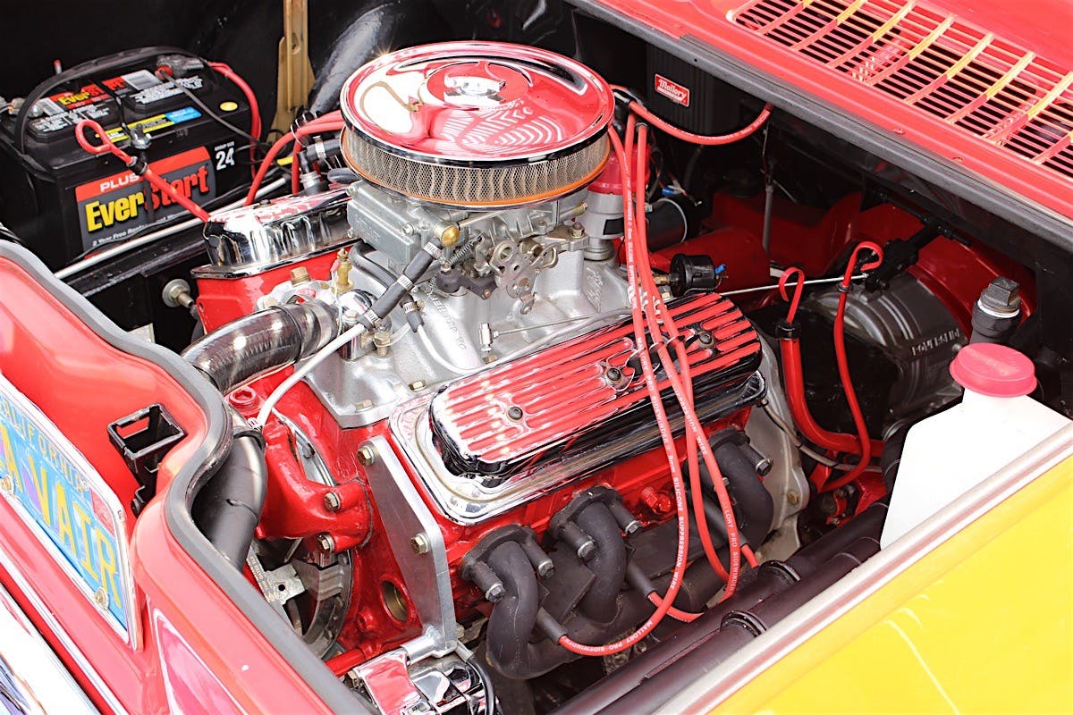 The first thing we asked about was, of course, the paint. Jerry told us that he’s had the car for six years, but only had the paint done last year. To give it the incredibly deep hue, he actually had some purple mixed in; at certain angles, it’s revealed in a beautiful gradient of the two colors. And with the original 327 small-block, Powerglide transmission, and air bag suspension, this BowTie likely cruises as good as it looks.