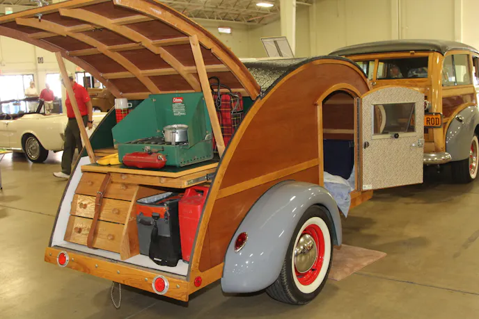 Once upon a time, vehicles that are now considered SUVs were used for family trips along the highways like Route 66. Many of these utility vehicles have been resurrected and restored to their former glory. We found Ray Deschenes’ 1947 Chevrolet Fleetmaster with a 1939 custom teardrop trailer at the show. This combo reminded us of a time when south-westerners used their vehicles on weekend trips to Yosemite and other vacation destinations. Ray is a member of the San Diego Woodies National Car Club, which brings our story back to the beginning.