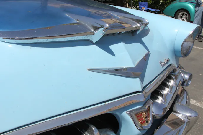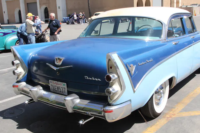 The Dodge was parked off on a side area, not seeking or finding much attention. We spotted it from a distance and drew closer so that we could see the unique tail light surrounds, chrome tail fins, and the upscale interior. Unfortunately we were not able to get a look at the original Hemi Red Ram engine under the hood as the owner was not to be found.