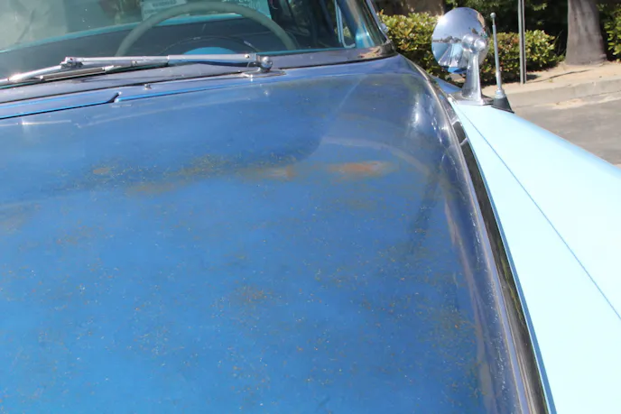 The paint was worn in certain areas, like the hood and the roof, but although lightly thinned, it was not completely worn through to bare metal.  The Custom Royal was the top trim level in the Dodge line from 1955 through 1959.