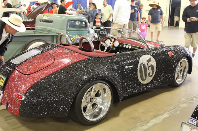 Another California-only design, specially developed by Kellie DeFries, better known as the Crystal Ninja, returned for a curtain call. The vintage 1956 Porsche holds the world record for the most crystals on a vehicle. Originally shown at the 2015 SEMA show in Las Vegas, the car makes occasional appearances at car events, usually drawing a crowd of interested onlookers. Car enthusiasts either love it or hate it, but there is always a crowd. The car features over $65,000 worth of Swarovski crystals in 20 different shapes and 10 different colors.