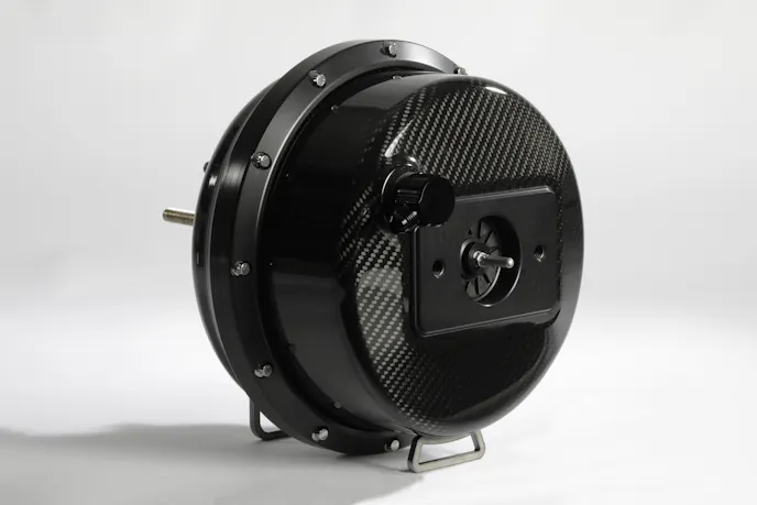 “Our Carbon X Brake Booster consists of high gloss outer carbon fiber shells holding the modern 9-inch, dual-diaphragm internals. All of this is held together with several CNC machined billet aluminum components including the two outer billet aluminum rings. The standard Carbon X Brake Booster will utilize outer rings that are standard in either black anodized, polished or brushed finish. A few custom upgrades are also available giving you the ability to match the brake booster to your engine compartment’s theme and overall look. Additionally, the outer rings can be configured so that you can see the hardware from the front or the rear of the brake booster.”