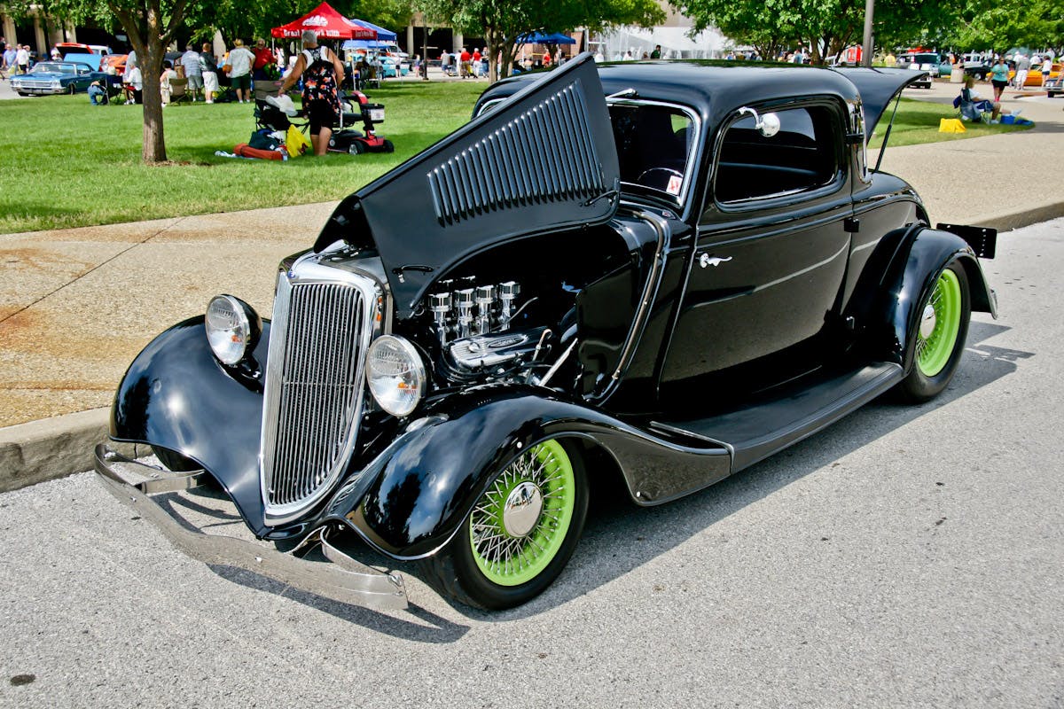 Making a black car stand out at a car show is a daunting task, so Lee opted to go with a classic set of bright green Dayton wired wheels (which is the reason we noticed the car to begin with), in a staggered fitment, with BFG tires.