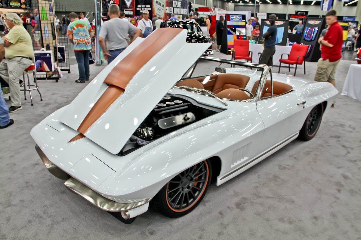 This wild, yet restrained, 1967 Corvette roadster is owned by Sonny and Debbie Freeman of Lafayette, Louisiana. This Arctic White 67 Vette, nicknamed “Revelation,” was built by Mike Goldman Customs, and is a top shelf car with outstanding styling.