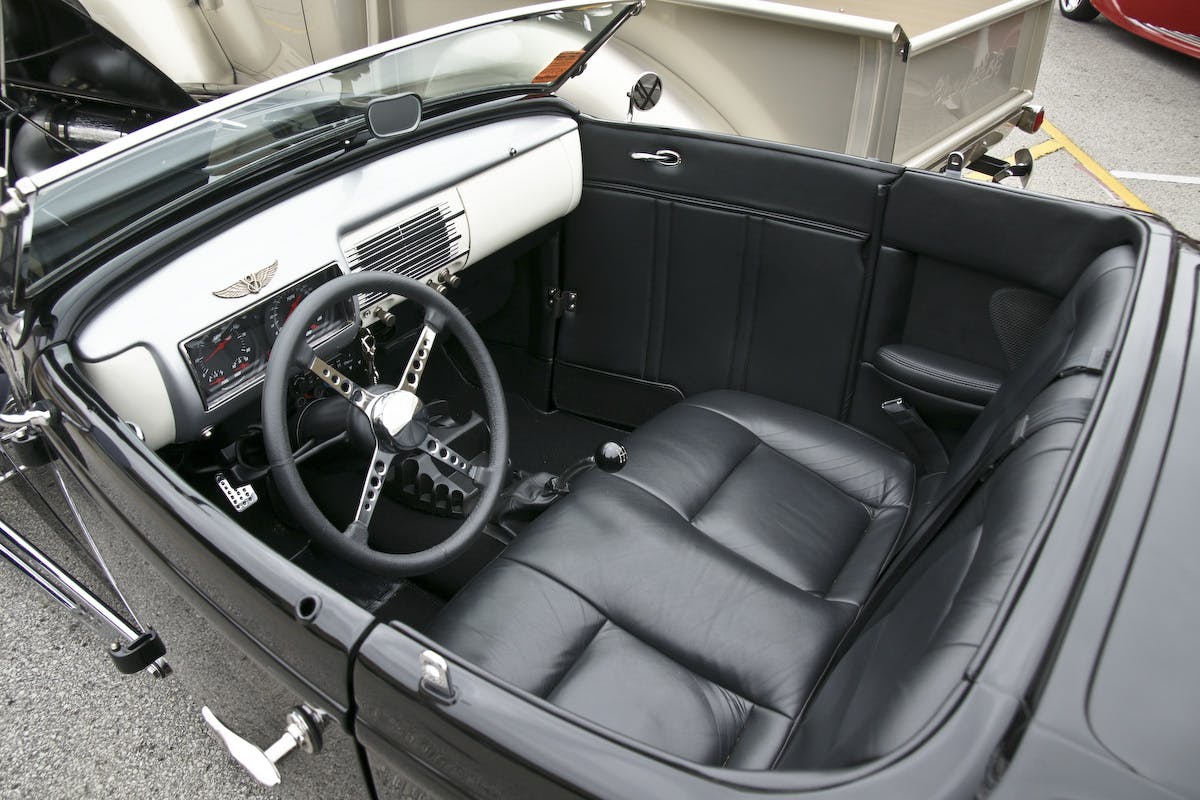 The car was kept as-is (an old school, unchopped hot rod) for several years before undergoing a significant transformation. After six years of buying parts, Lee finally put his restomod build into motion. The car had been in an accident at some point, so the firewall and floor were replaced, then tubbed out. The chassis was also replaced with a TCI Engineering complete chassis utilizing Ridetech Shockwaves. With the foundation set, Lee decided he wanted plenty of ponies to move his ride down the road like a bullet, so he chose the 560 hp Roush IR 427 with an aluminum block which minimizes weight.