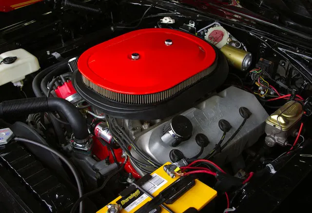 Standard engine for the Super Bee, like the Road Runner, was the 383. Dodge called it the Magnum, and it put out 335 horsepower. It sat under a domed hood but, for a little bit of dough, the Ramcharger hood could be ordered to feed cold, dense air into the carburetor.