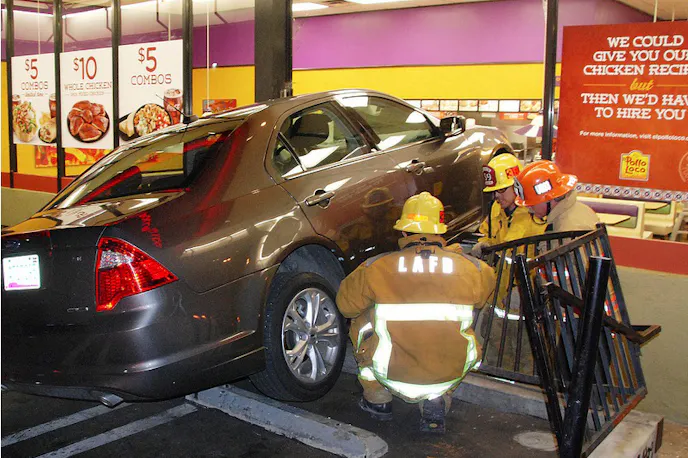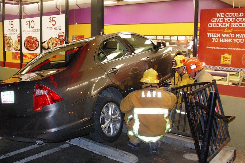 In fact, it was a human–one who may be needing to buy a Metro monthly pass in the near future–who was the object of “craziness” in Van Nuys, California, this last January, as an unnamed motorist at an El Pollo Loco restaurant at the 6600 block of Van Nuys Boulevard crashed into the restaurant’s front, supposedly putting the car in drive by accident instead of reverse.