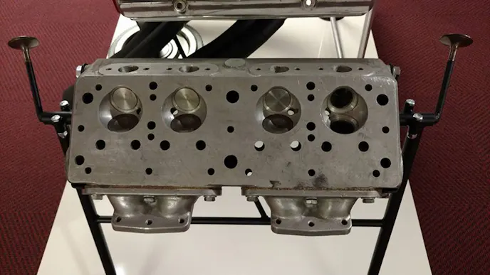As mentioned, there were two things to remember about this era – EVERYONE was trying something new, and heat was the flathead’s main enemy! The Alexander head was designed during World-War II and addressed the heat issue by moving the exhaust port up out of the block, but kept the stock intake port design. This reduced heat absorption but didn’t do much for performance, as the airflow’s path was still quite restrictive and convoluted. Looking at the exhaust ports, you’ll notice the Alexander design still makes the exhaust ports do double-duty between two cylinders.