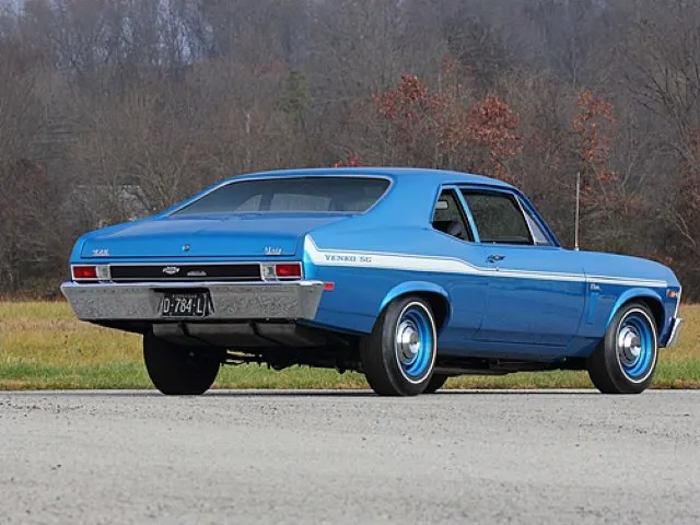 1969 Chevrolet Yenko Nova RearWhat makes this Yenko SC427 Nova super rare is that less than 10 are known to exist today. With a frame-off restoration over 15 years ago, this LeMans blue coupe featured contrasting yellow stripes and graphics which intimidated competitors once they realized what they were up against. This coupe is equipped with the L72 engine mated to a 4-speed manual trans and 4.10:1 Positraction third member.