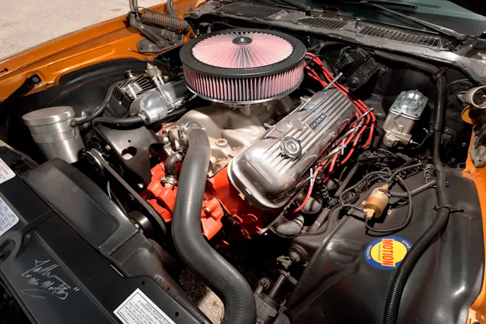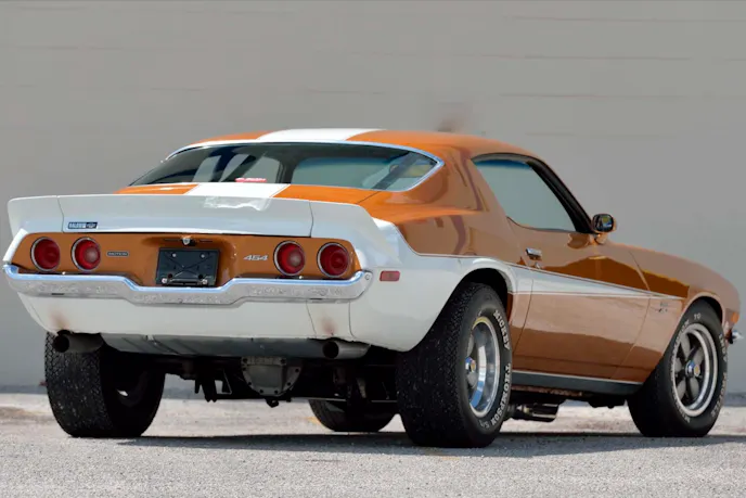 This example, built in ’73, is believed to be the last ever Baldwin-Motion Camaro built and sold. It was actually originally owned by the technician that built it at Motion Performance. A unique gold exterior paint with white stripes covers the car. Under the aggressive L88-style hood sits a 454 cubic inch V8, and it’s power is put to the ground with Mickey Thompson S/S Indy Profile tires wrapped around mag wheels. Inside, it features a classy black interior with sporty bucket seats, a floor console with a shifter, a basic AM radio, dual sideview mirrors, and even a Motion-installed roll bar–but most impressively: the autograph of “Mr. Motion,” Joel Rosen.