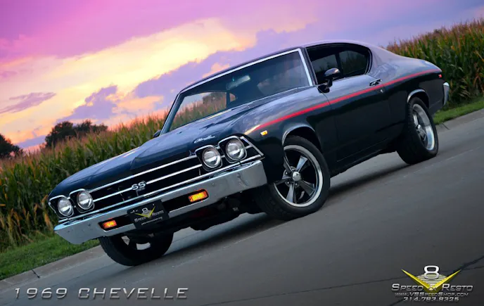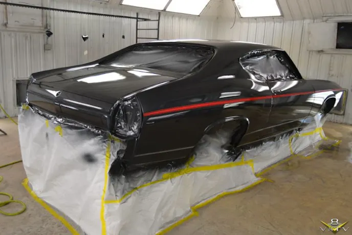 With the suspension, body, and powertrain dealt with, Kevin and company moved onto the paint—this car had to have curb appeal, after all. Al wanted something that looked period-correct, but he wasn’t terribly concerned with appeasing the die-hard traditionalists. Keeping it in the family, they went for a coat of GM Carbon Flash: a metallic black brightened by a layer of subtle blue flake. To add a little contrast and some classic style, they painted on SS side stripes completely accurate to GM specifications.