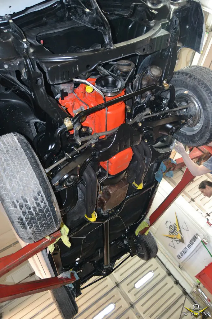They were off to a good start, but Al recognized his limitations and started looking to a professional shop to do what he couldn’t. After stumbling upon the build videos of the SS496 Chevelle online, Al contacted V8 Speed & Resto Shop and handed off this dusty Chevelle for Kevin Oeste and crew to begin repairing the weathered body. New floors, doors, and window frames were the first assignments atop a long list of to-dos. Once they’d narrowed some of the fender gaps, added a solid cabin floor, put it on the rotisserie, and media blasted it, they addressed another critical factor: suspension and ride height.