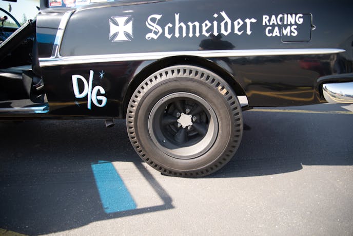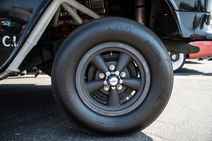 The grip is supplied by the Hurst racing tires on the rear and M&H RaceMasters on the front. The tires are wrapped around original, magnesium American Racing wheels. It’s cool enough to see a set of original magnesium wheels on their own, but a real treat to see them on this period correct racer.