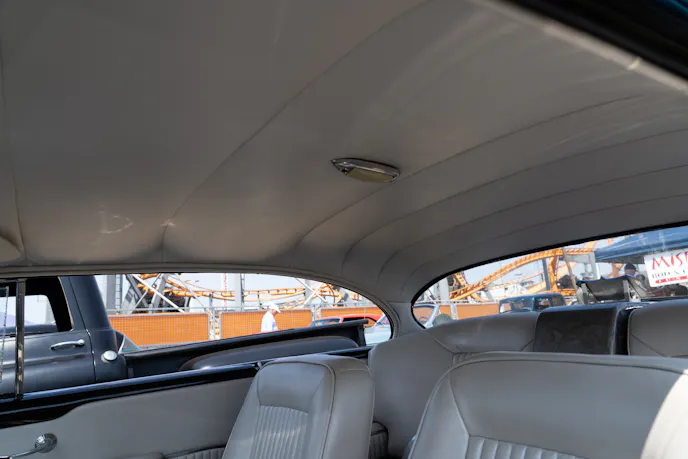 There really is very little of the original look that has remained and every panel has been touched in some way, It has ’55 Pontiac front and rear bumpers, ’53 Hudson taillights, and the peaks on the front fenders and rear quarters was custom done. The grill is from a ’52 Kaiser and the door handles are off of a ’41 Lincoln.