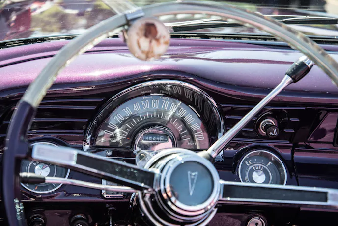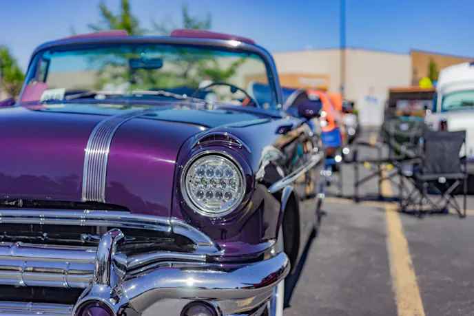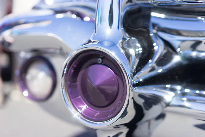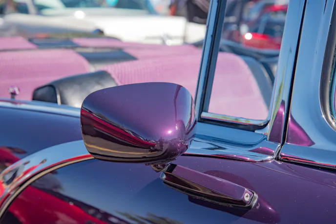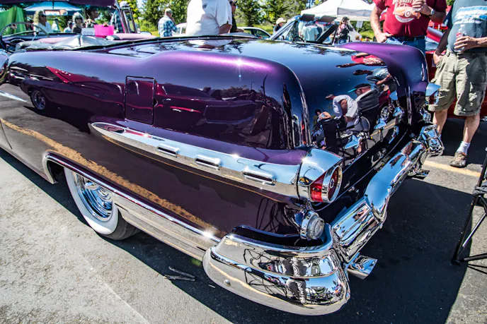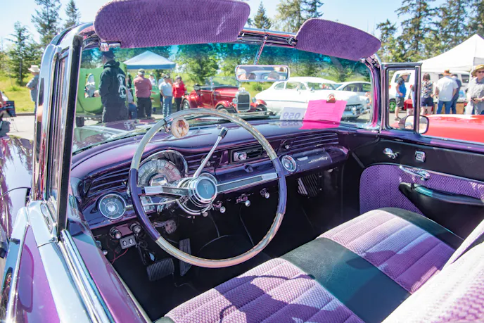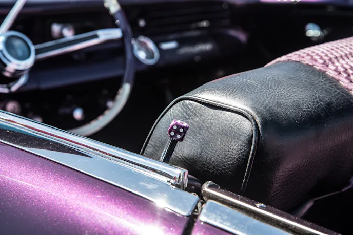 More than just the stellar deep purple color, there are a few other cool modifications that John has made to his car. If you are familiar with this era Pontiac, you may have noticed that the trim that goes on top of the fins and matches the trim on the hood is missing. John did not like the way it looked in the back above the taillights so he removed them and smoothed the fins for a more sleek look. It’s a subtle change that really adds to the character of the car.