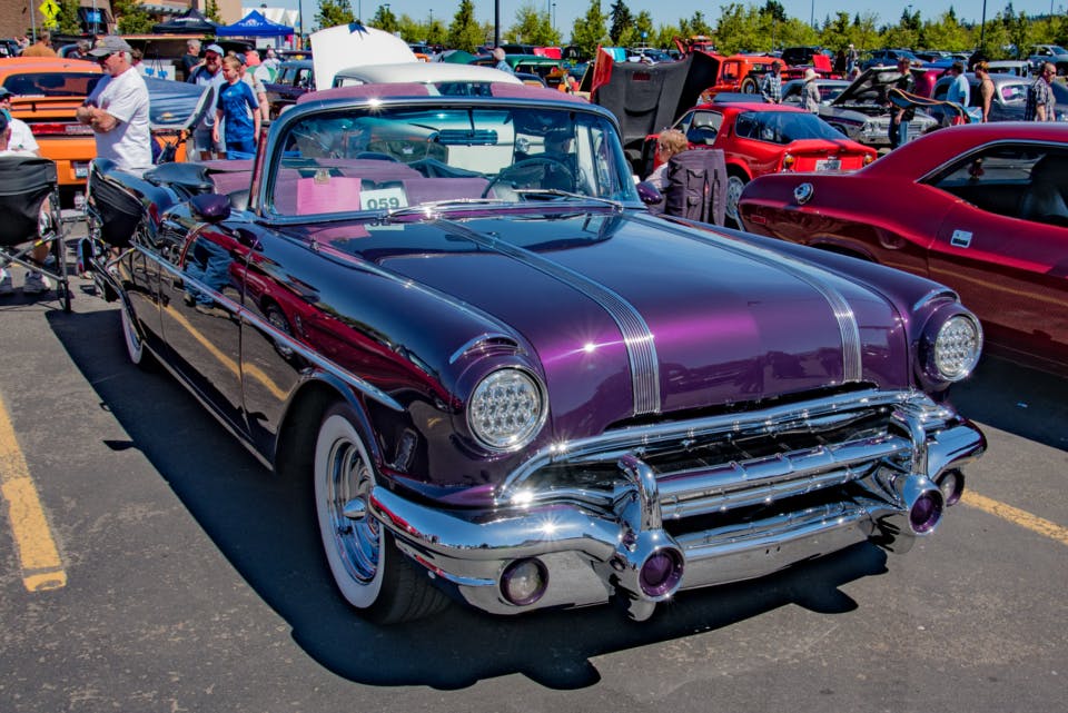 This beautiful purple Pontiac belongs to John Rudder of Port Angeles, Washington, and he’s had the car for 20-years this year. John bought the car in 1998 and they drove it to Reno in 1999. It’s a show stopper now, and would you believe it’s got 60-thousand miles on it since it was restored? “I drive my cars,” John said. “We take this to Reno every year.” This car may be a trophy qualifier, but she’s definitely no trailer queen!