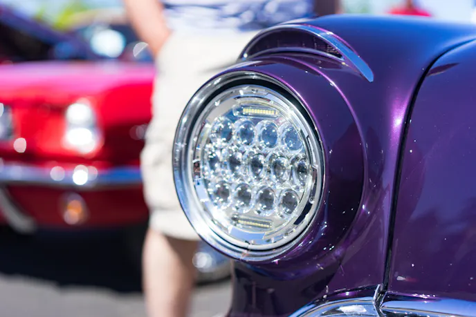 John also updated the all-black interior with purple fabric inserts and other showy plumage. Now, with the top down in the hot sun at a show all day, he is not burning his legs when he goes to sit down and drive home. The inserts work to both improve the look and the functionality of the car. Our favorite kind of modification!