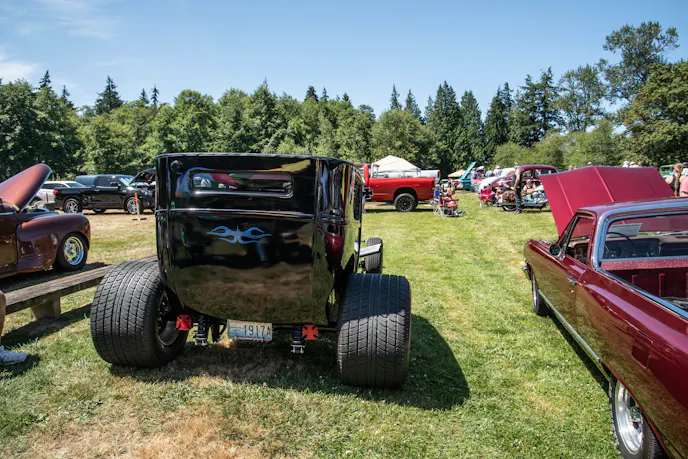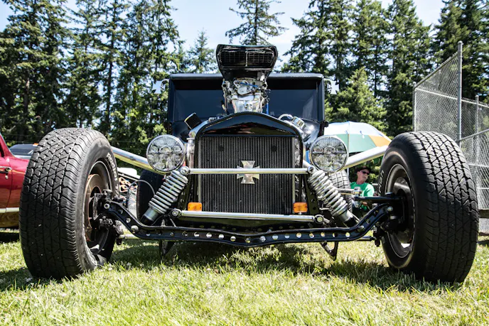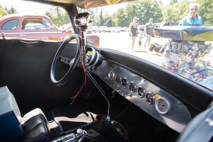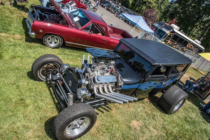 This sinister, mean, vinyl-topped Model T sedan is owned by Ron Rogers of Port Townsend, Washington. It’s just as loud as it looks with the open-header exhaust, and just as mean too. This is a really cool looking car that’s got that classic vibe we love, with just the right amount of custom to make it the kind of build we’re looking for.