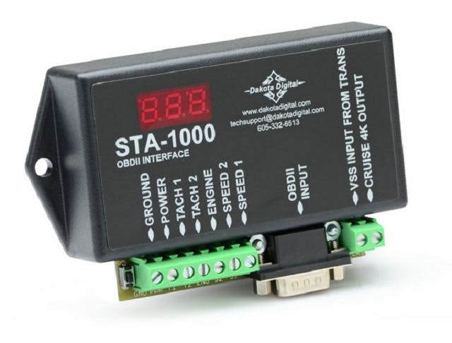 If you’re looking for simple, late model drivetrain integration for your OBDII vehicle, this interface was made for you. By plugging this interface into your engine’s diagnostic port, you have access to a user-adjustable speedometer, tachometer and check engine output for a variety of aftermarket instruments. Get up to a 35% speed correction for tire size, an adjustable 4,6 or 8 cylinder tachometer signal output and a grounded check engine output to activate a check engine light of your choice all in a compact interface that’s fully compatible with all aftermarket speedometers. This interface can be purchased for just $99.95.