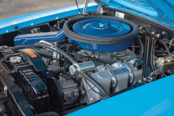 Ford took their 385 cubic-inch V8 and developed a new version of it with specially modified oil and water passages, four bolt main bearings, and all forged steel internals. The legendary 429 was born. Upon debut, they gave the engine an insurance-friendly rating of 375 horsepower, though the actual output in stock form is said to be well over 500.