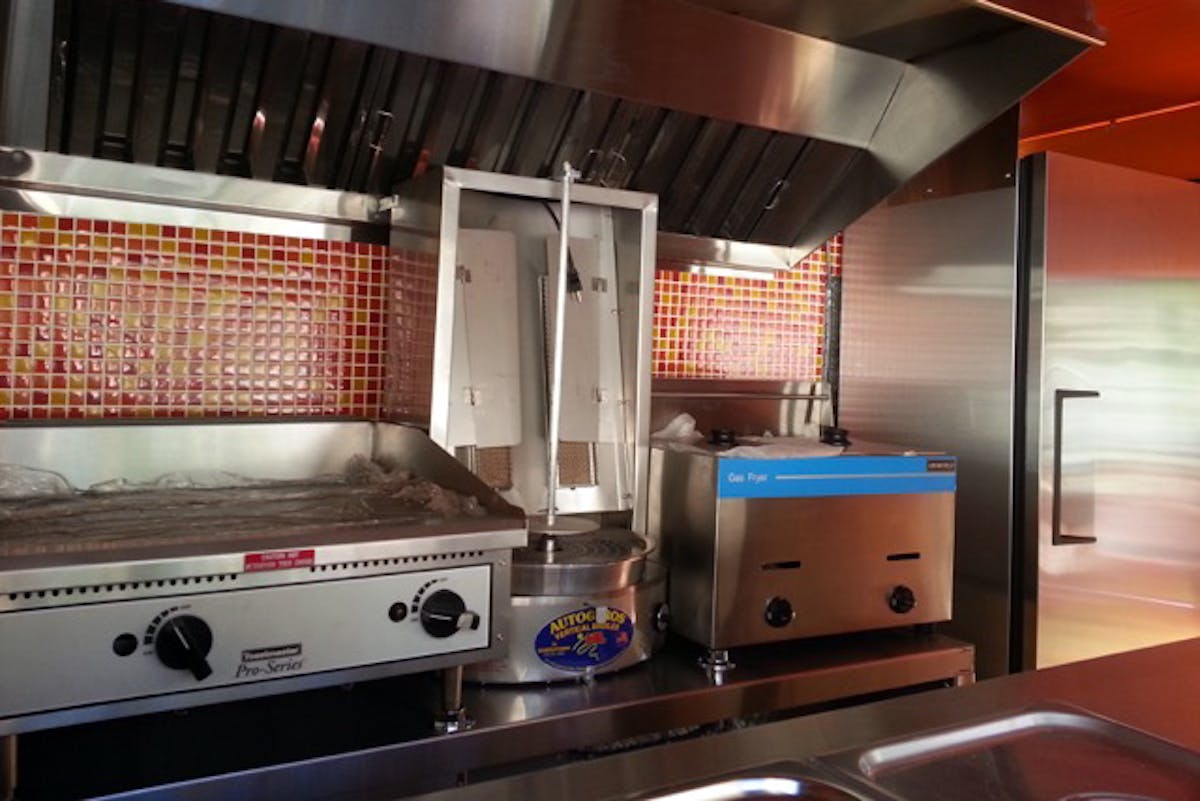 It features a 6’ exhaust range hood with a commercial exhaust fan (the fan is not installed on the truck for transport clearance) and is fully equipped with safety features, including suppression system, automatic shut-off valve, manual valve, window safety switch and pressure sensor switch.