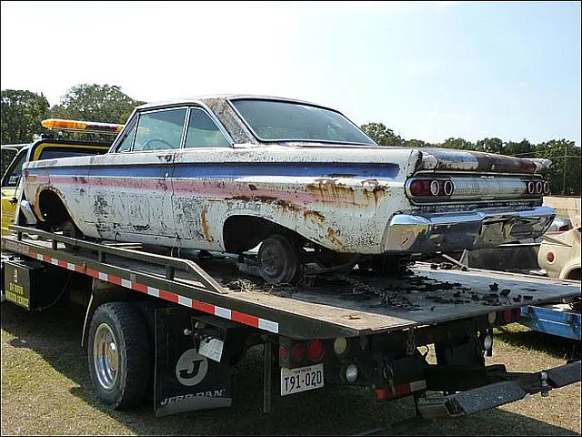 Originally, the Mercury was built to be a part of Ford’s Factory Drag Team in the mid 1960’s. Judging from the photos it was most likely a super stock car. In 1965 it was delivered to Les Ritchey’s Performance Associates in California for the price of $1.00 (Boy, do we wish shipping cars was still that cheap). It was raced in So-Cal for a few years and then some how it made it’s way to Texas. Here it became forgotten about and sat for 40 years or so. Seeing barn finds like this makes us wonder how cars like this up end in the places they do.