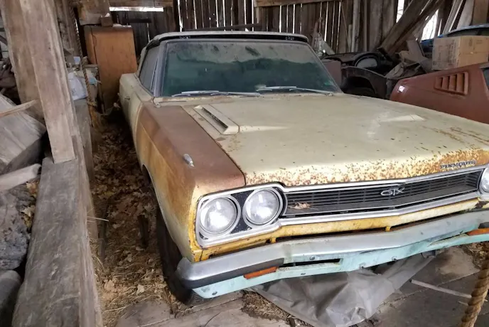 While the Road Runner was only available in hardtop or coupe form, the GTX was available as a convertible. For 1968 only 36 of those convertibles were ordered with the Hemi engine, which sported a pair of Carter 4-barrels. According to the seller in the Syracuse, New York, Craigslist ad, this tired old 1968 Hemi GTX convertible is one of 12 with the 4-speed option.