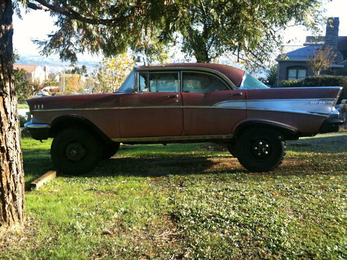 Who doesn’t love a fun little crossover? No, we’re not talking about some blasé Nissan Rogue or Ford Edge, we’re talking about actually taking two separate yet awesome ideas and merging them together. That’s got to be what motivated the owner of this 1957 Bel Air to craft something that would get looked at and talked about wherever he went.