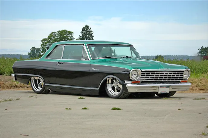 The Nova rides on a set of 18-inch and 20-inch Billet Specialties wheels with low-profile tires, and it sits in the weeds for that perfect stance with the Air Ride suspension.. This is a car you can take to the show or just cruise in it, either way, it’s going to turn heads. Inside, you’ll find four bucket seats and a full length console with a custom frame and floor pans underneath, and four-wheel discs to slow it down.