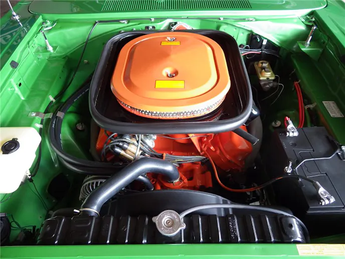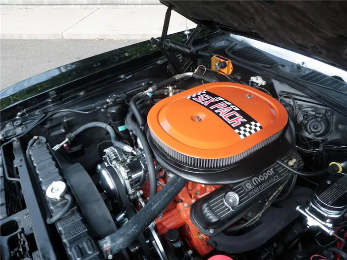 The 390 hp big block was fully rebuilt and mated to the original four-speed and the correct Dana 60 with 4.10 Sure Grip gears. The factory lift-off fiberglass hood and Bee stripe are what sets this car apart on the outside, and the white deluxe vinyl interior with the original push-button AM radio and bucket seats with full console set off the interior appointments.