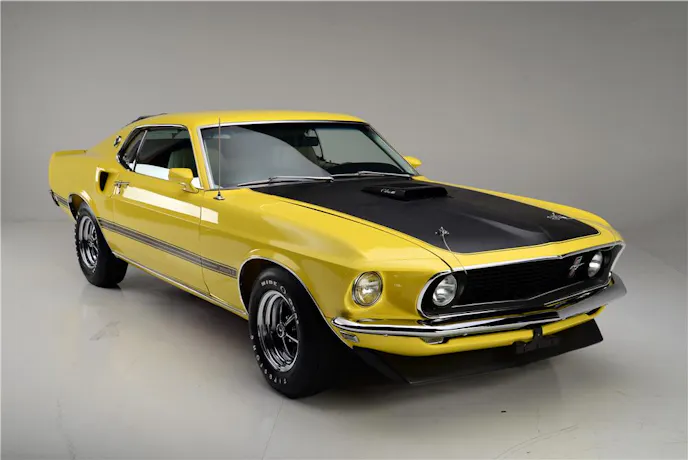 Switching things up and bringing about a fastback, this rare (as in one of one) pony has the factory R code, Ram Air Shaker Hood, and the powerful 428 Super Cobra Jet engine. No other cars off the line in 1969 were said to have the same options as this documented car.