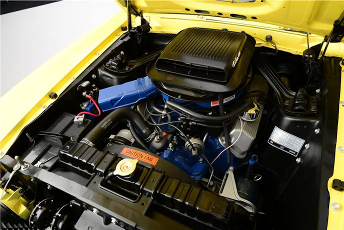 Though the drivetrain is correct, we’re told it’s not the original – but has been improved upon with no expenses spared. It has been upgraded with a four-speed transmission and the car has been converted to Shelby yellow from the original color.