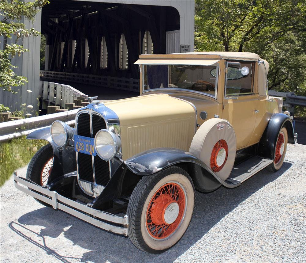 “The engine was replaced from a 1930 Pontiac in 1990 and overhauled and repaired in 1997.” The cream body contrasted by orange wire wheels and whitewall tires make this a real summer treat.