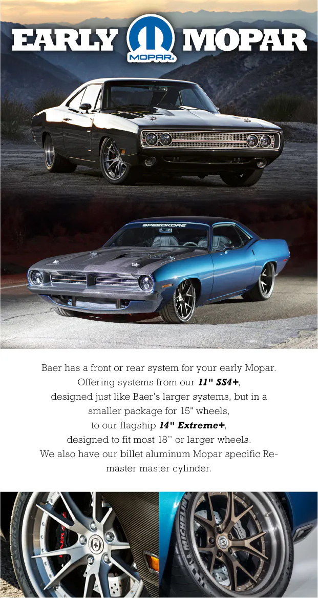 We already know from the two cars above that Baer offers brake setups for Fords and Chevy’s, but what about the Mopar crowd? Well, we just got word that they also make kits to accommodate early Mopars. They even have kits that allow users to opt for smaller “period-correct” wheels. So, go buy you some Keystone Klassics and give Baer a call.