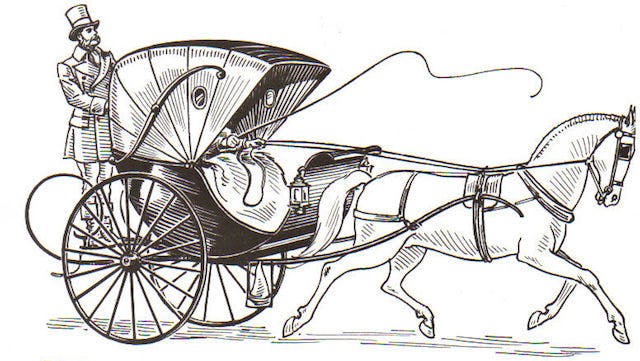 Originally the term cabriolet was used to describe a french designed light horse-drawn carriage with two-wheels and a single horse. The carriage was outfitted with a single seat meant for two occupants. These two occupants were protected from the weather by a folding hood that provided cover. These light carriages replaced heavier ones and were often used a vehicles for hire to transport a person around Paris or London. These became known as “hansome cabs,” as the term cabriolet was shortened to cab.