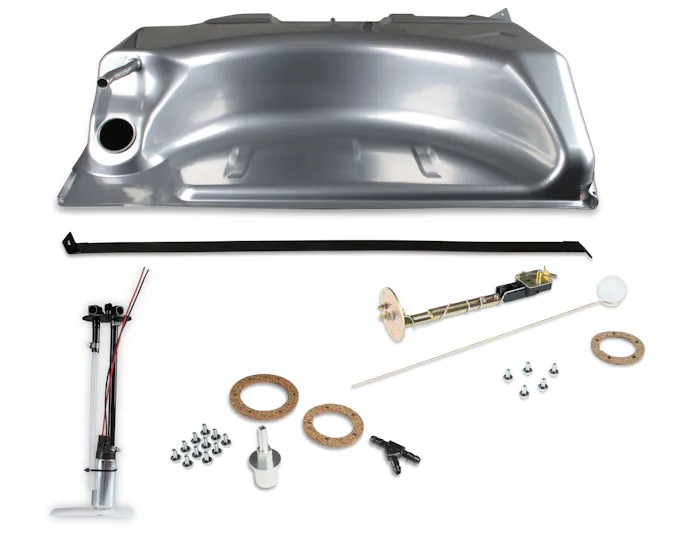 Holley and Sniper will help you complete your EFI swap with their new EFI Conversion Fuel Tanks. Each tank is a direct fit for your application. That means there are no modifications needed. The kits include a tank, 255 lph fuel pump, internal baffling, and a fuel level sender. These tanks come powder coated to help prevent corrosion, as well as, giving it that great, clean, perfect look. These tanks are the perfect solution to help complete your EFI project!