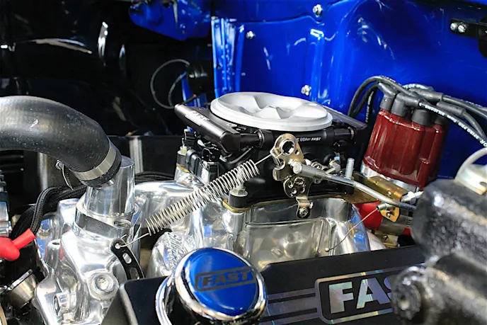 This Bel Air is powered by a 383ci small-block V8 that formerly saw air and fuel delivery from a 650 cfm carburetor. It was slightly warmed over with a set of headers and an Edelbrock intake manifold, and was putting out close to 450 horsepower. The car was built to be a cruiser with an attitude, making it a perfect candidate for the FAST EZ Fuel conversion.