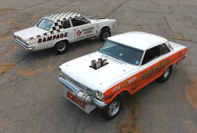 But Magnante wanted to go even further, specifically, onto the streets with his funny car creations. With their altered wheelbase and fiberglass bodies, funny cars really had no place on the street. That didn’t stop Magnante, who set out to build a big-block powered Chevy II with fuel stack injection, a straight front axle, and a rear axle moved forward quite far.