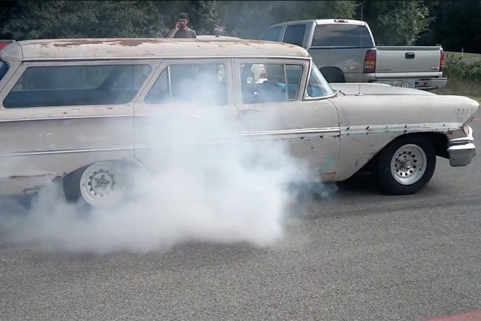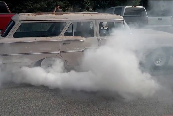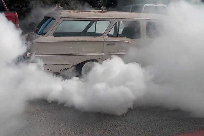 Burnouts are fun, smokey expressions of freedom, but the have a tendency to find the weakest part of a car and exploit that weakness. Usually the classic or modern muscle car crowd tend to be the burnout junkies, but occasionally a classic Chevrolet will get in on the action. Obviously, Brookwood wagons were not meant to be a performance car, but they are plenty capable of tire destruction.