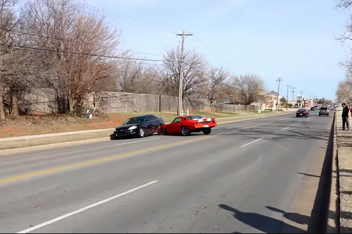 Coffee and Cars in Oklahoma City, Oklahoma, is an event that draws automotive enthusiasts the first Saturday of every month. At the conclusion of the event some attendees opt to put on a bit of a show for the crowds as they head home for the rest of the day, but sometimes things go awry.