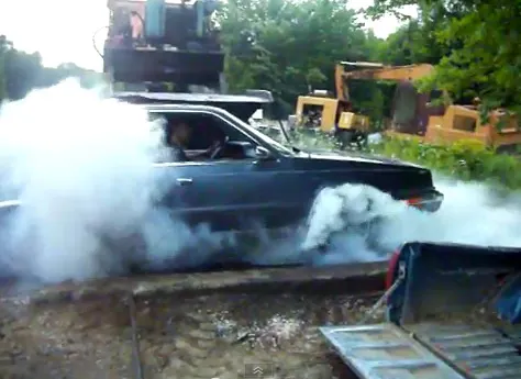 This video entry from Jalopnik is an example of just one of those good ‘ol, silly things guys can and will most-likely do with their cars. These two goofballs are trying to flex their tire-burning “muscles” in this early ’90s, Chrysler New Yorker.