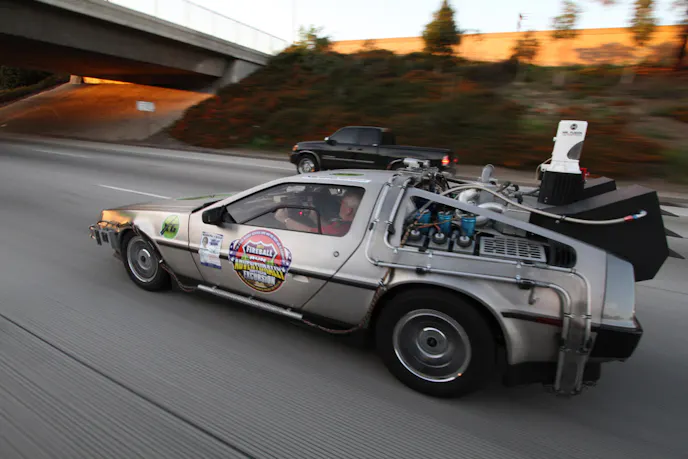 Ever been stuck in bumper-to-bumper traffic when it suddenly – an inexplicably – opens up? Ever wonder what the hell caused that gridlock? Well, we think we finally found the answer. While on our way to the 2011 MPMC, we spotted this fully-outfitted, completely correct DMC-12 Time Machine replica of the “Back to The Future” series.