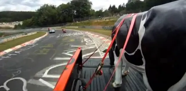 Would you trust ordinary tie-down straps to hold a cow in the bed of an SRT10 Ram while it races around at Nurburgring? How about Quickloader straps? Sounds like a challenge for the crew of Top Gear! In the video, a SRT10 Ram sets the world record for cow transport on the famed raceway. And yes, we know how strange that sounds, but we’ll bet you watch it anyway.