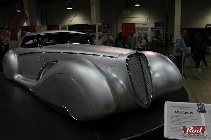 Aquarius was styled by Rick Dore, Marcel, and Eric Brockmeyer. The hand formed panels are mounted onto a 1934 Packard frame. Ron Mangus upholstery graces the interior and Coker tires move this celestial chariot along. Keep a look out for Rod Authority’s follow up on Aquarius upon its completion.IMG_2285