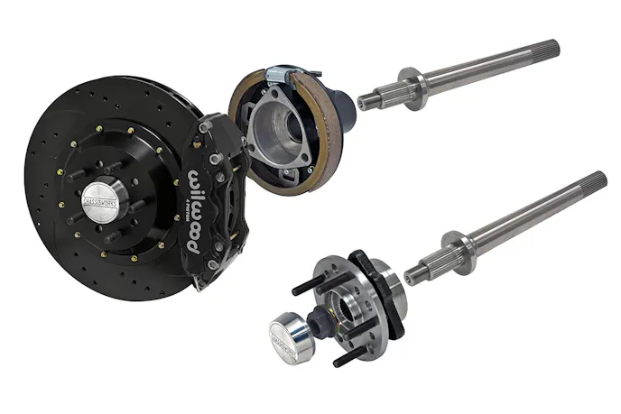 - Brake kits offered with 14-inch or 15-inch x 1.25-inch vented and cross-drilled rotors, with 4-piston Wilwood or Baer radial-mount calipers