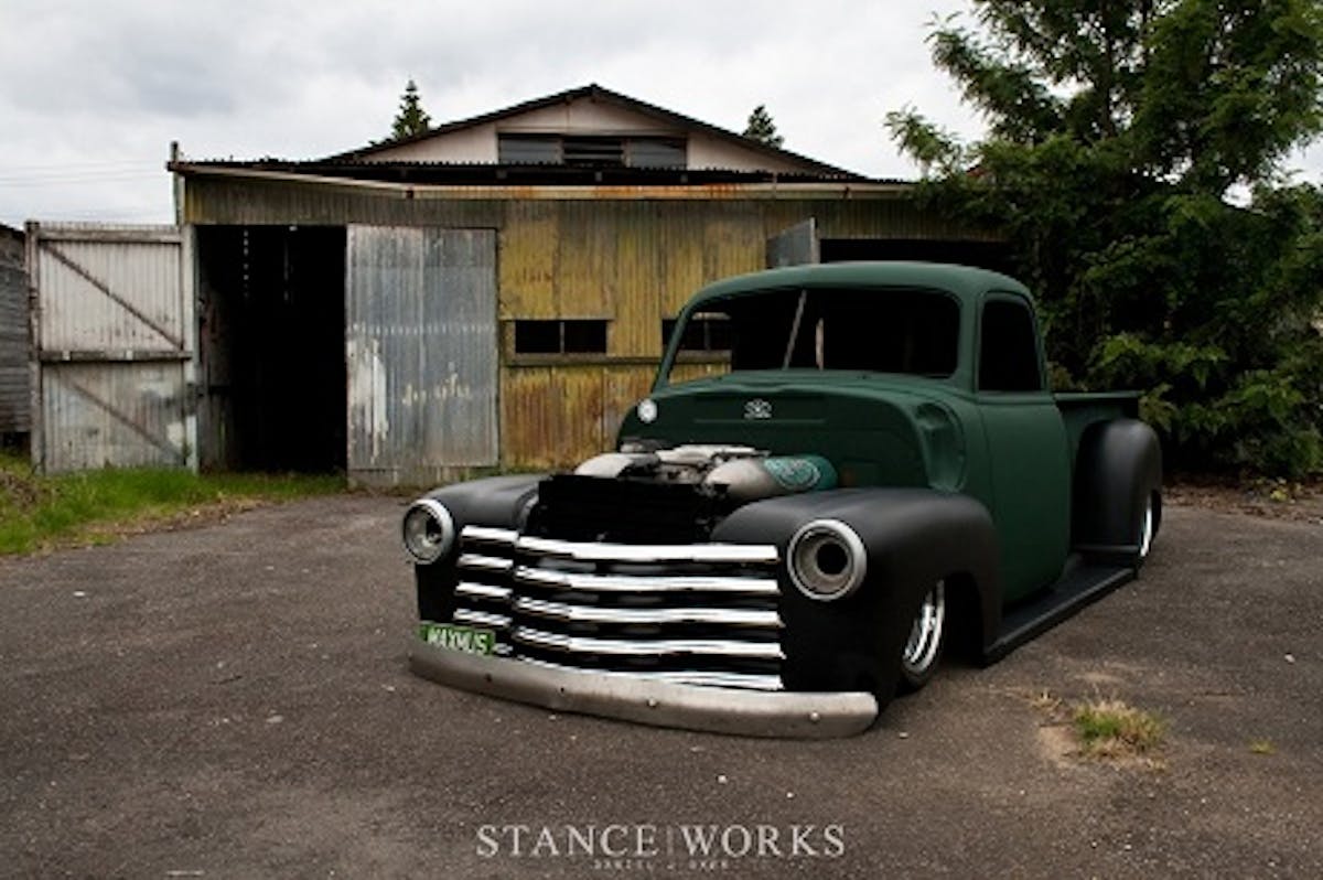 Tired of same old cast of characters? Looking to take a walk on the wild side? Maybe it’s time for a trip down under for a “Chevy 3 Way.” According to Stance Works, The Chop Shop’s Aaron Gregory orchestrated  this Aussie mash up of a ’51 Chevy Truck Cab, a 5.0 small block Chevy (Holden) and the running gear of an Izuzu Rodeo.